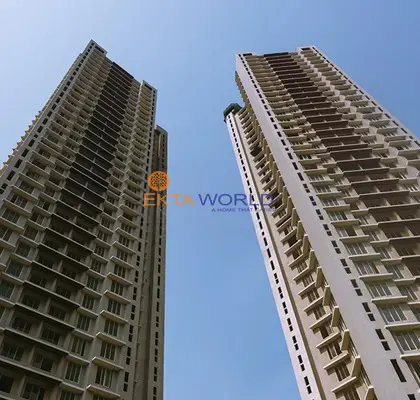 Occupation certificate already received, which removes construction risk and allows immediate rent or end-use. Ekta World brings 33 years of experience and the project carries 22 RERA registrations. 36-storey towers on a 4,551 square-metre plot deliv...